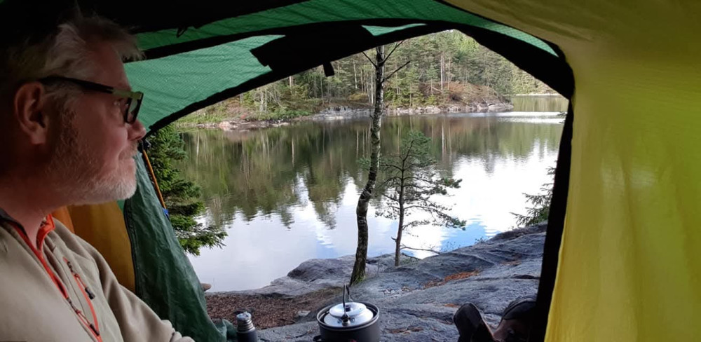 Beautiful spot for a rest or to wildcamp. There is a windshelter with a firepit, but also place to pitch a tent or hammock. Fun trail to ride. Beautiful lake view and perfect for a bath.