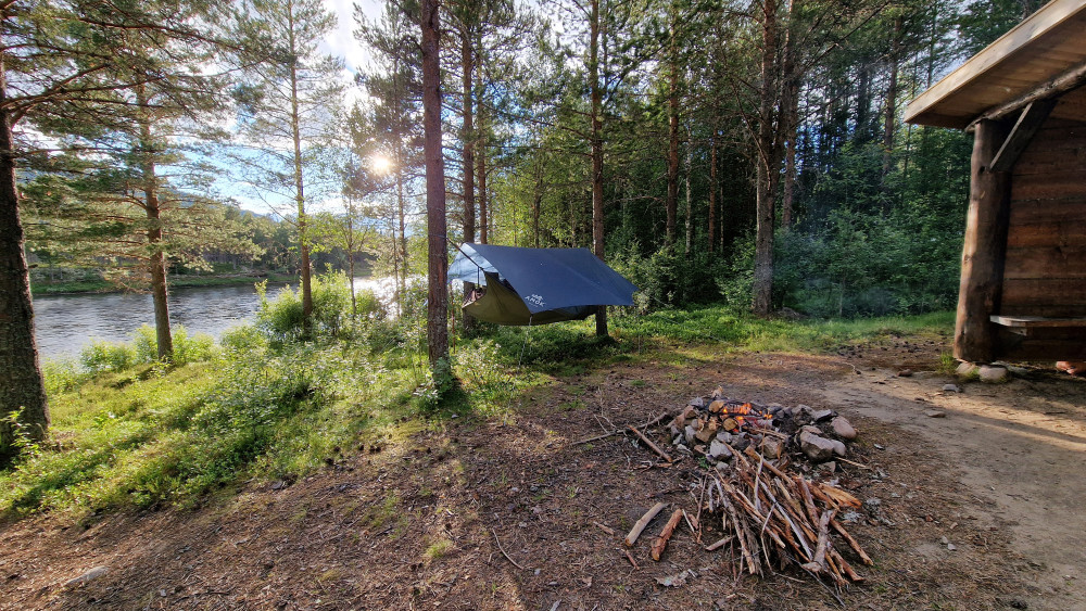 Wild campspot by the river Trysilelven, windshelter, outhouse toilette.