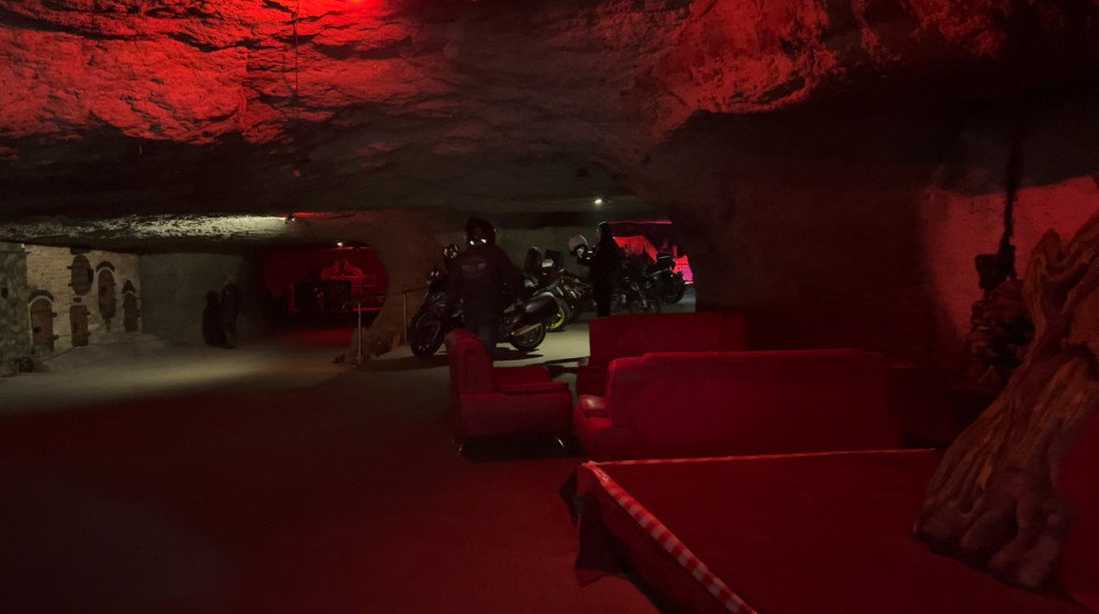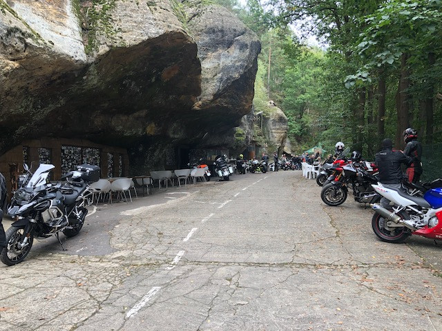 Bikers' meeting point and Moto-club. A cave system that you can drive through. Small restaurant/buffet. Cool place.