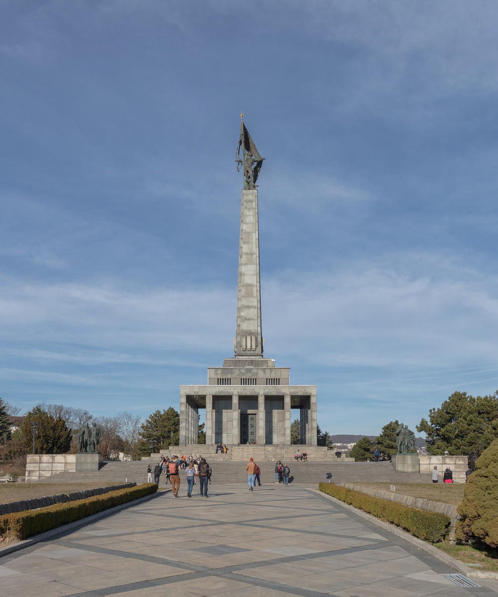 IIt was constructed between 1957 and 1960 on the site of a field cemetery, and opened on April 3, 1960 on the occasion of the 15th anniversary of the city's liberation. The monument was constructed similar in kind to the Palace of Culture and Science in Stalinist architectural style. In 1961 it was declared a National Cultural Monument. Its designer was Ján Svetlík.